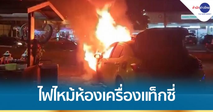 ไฟลุกไหม้ห้องเครื่องแท็กซี่ บริเวณปากซอยเอกชัย 66/3 โชเฟอร์พาผู้โดยสารหนีตายหวุดหวิด