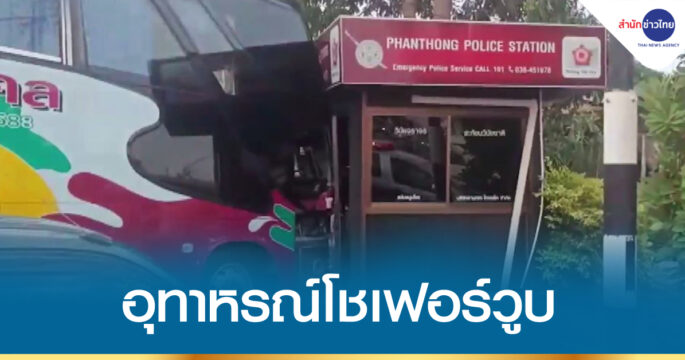 รถบัสรับส่งพนักงานพุ่งชนป้อมตำรวจ กลางแยกไฟแดง จ.ชลบุรี หลังคนขับรถวูบหมดสติ กู้ภัยเร่งช่วยเหลือ สุดท้ายเสียชีวิตในเวลาต่อมา