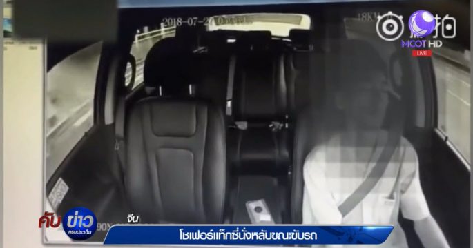 กล้องวงจรปิดจับภาพวินาที คนขับแท็กซี่เผลอหลับขณะกำลังขับรถนานเกือบ 1 นาที ก่อนจะสะดุ้งตื่นหลังจากรถแล่นทับวัตถุบางอย่างริมถนน