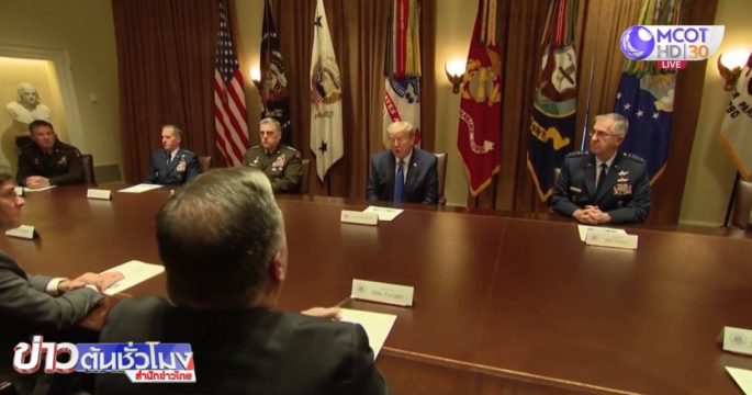 ประธานาธิบดีโดนัลด์ ทรัมป์ ผู้นำสหรัฐ เรียกประชุมคณะทำงานด้านความมั่นคงทั้งหมด รวมทั้งประธานคณะเสนาธิการร่วม ที่ทำเนียบขาวเมื่อวานนี้