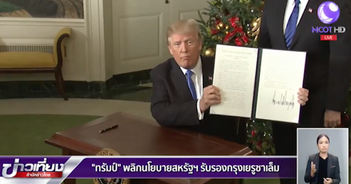 ประธานาธิบดีโดนัลด์ ทรัมป์ พลิกนโยบายสหรัฐครั้งใหญ่ ด้วยการยอมรับกรุงเยรูซาเล็มเป็นเมืองหลวงของอิสราเอล แมัจะถูกทัดทานจากโลกมุสลิมและอาหรับแล้วก็ตาม