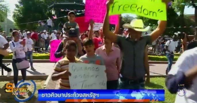 ชาวคิวบาที่ติดค้างอยู่ที่เมืองนูโว ลาเรโดของเม็กซิโก พากันเดินขบวนประท้วง เรียกร้องให้ประธานาธิบดีโดนัลด์ ทรัมป์ รื้อฟื้นนโยบาย “เท้าเปียก เท้าแห้ง”