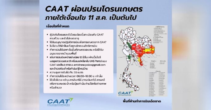 กทม. 9 ส.ค.-CAAT ประกาศผ่อนปรนเฉพาะโดรนเกษตร 11 ส.ค. เป็นต้นไป ภายใต้เงื่อนไขที่กำหนด สำนักงานการบินพลเรือนแห่งประเทศไทย (กพท.) หรือ CAAT ออกประกาศฉบับที่ 3 ยังคงห้ามทำการบินอากาศยานซึ่งไม่มีนักบิน (โดรน) ทุกประเภททั่วราชอาณาจักร จนถึงวันที่ 15 สิงหาคม 2568 หรือจนกว่าจะมีประกาศเปลี่ยนแปลง ทั้งนี้เพื่อความมั่นคงและความปลอดภัยทางการบินในช่วงสถานการณ์ชายแดนไทย–กัมพูชา อย่างไรก็ตาม ตั้งแต่วันที่ 11 สิงหาคม 2568 เป็นต้นไป CAAT จะผ่อนปรนอนุญาตเฉพาะการบินโดรนเพื่อการเกษตร ภายใต้เงื่อนไขที่กำหนด ได้แก่•ผู้บังคับโดรนและตัวโดรนต้องขึ้นทะเบียนกับ CAAT ครบถ้วน และยังไม่หมดอายุ•ได้รับอนุญาตปฏิบัติการบินเพื่อการเกษตรจาก CAAT•ไม่มีประวัติฝ่าฝืนหรือถูกเพิกถอนสิทธิการบิน•ทำการบินได้เฉพาะในพื้นที่เกษตรของตน หรือได้รับอนุญาตจากเจ้าของพื้นที่•แจ้งการบินล่วงหน้าอย่างน้อย 12 ชั่วโมง ผ่านเว็บไซต์ uasportal.caat.or.th หรือแอปพลิเคชัน UAS Portal ของ CAAT หรืออีเมล ศตอ.น. antidrone.police@gmail.com หรือ ตำรวจท้องที่ หรือกำนัน/ผู้ใหญ่บ้าน•ความสูงการบินไม่เกิน 30 เมตร•ทำการบินได้ระหว่างเวลา […]