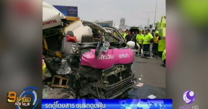 รถตู้โดยสารชนกับรถบรรทุกดูดฝุ่น บนทางยกระดับดอนเมืองโทลล์เวย์ ฝั่งขาเข้า ก่อนถึงทางลงดินแดงประมาณ 1 กม. มีผู้เสียชีวิต 2 ราย บาดเจ็บ 3 ราย ล่าสุด ตำรวจเคลียร์พื้นที่ได้แล้ว แต่ยังมีรถติดสะสม