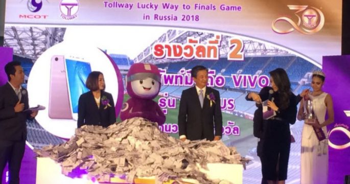 ผู้โชคดีจากกรุงเทพมหานครและปทุมธานี ได้รับรางวัลจากใบเสร็จทางด่วนโทลล์เวย์ ไปชมฟุตบอลโลก รอบ 16 ทีมสุดท้าย ที่รัสเซีย
