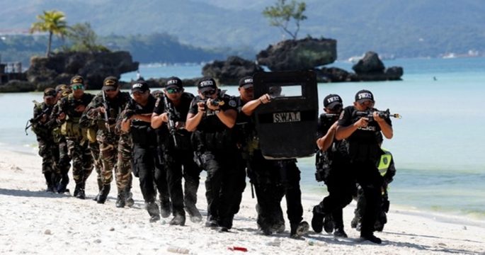 ตำรวจฟิลิปปินส์ซ้อมรับมือเหตุจลาจลในวันนี้ ก่อนที่จะปิดโบราไกย์ เกาะท่องเที่ยวชื่อดังเป็นเวลานาน 6 เดือนนับตั้งแต่วันพรุ่งนี้ตามคำสั่งของประธานาธิบดี