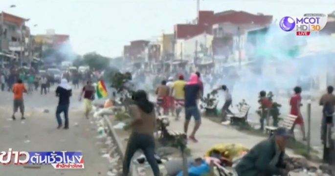 กลุ่มผู้สนับสนุนคู่แข่งชิงตำแหน่งประธานาธิบดีโบลิเวีย 2 ฝ่าย เกิดการกระทบกระทั่งกัน ขณะที่ประธานาธิบดีอีโว โมราเลส ประกาศชัยชนะในการเลือกตั้ง พร้อมกล่าวหาฝ่ายค้านว่าพยายามก่อรัฐประหาร