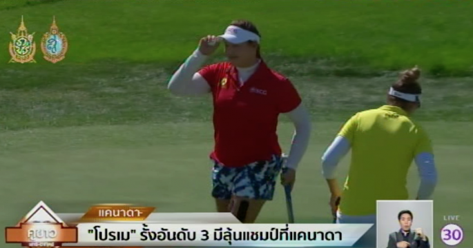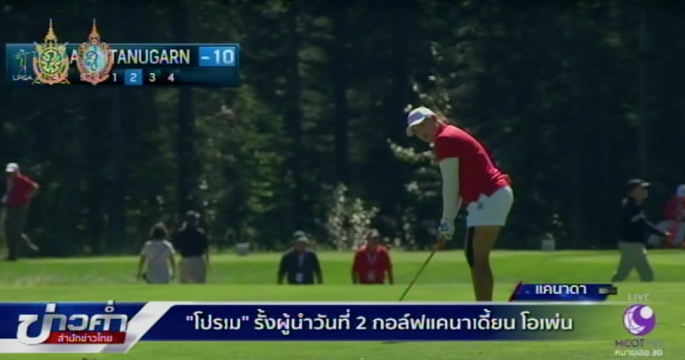 โปรกอล์ฟสาวไทยมือ 2 โลกอยู่อันดับ 4 ร่วม หลังตีไป 14 หลุมเนื่องจากฟ้ามืด ของกอล์ฟ แคนาเดียน แปซิฟิก วีเมนส์ โอเพน ที่แคนาดา ตามหลังผู้นำ 2 สโตรก