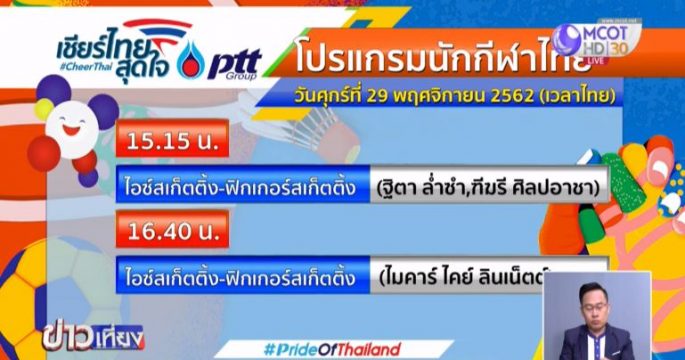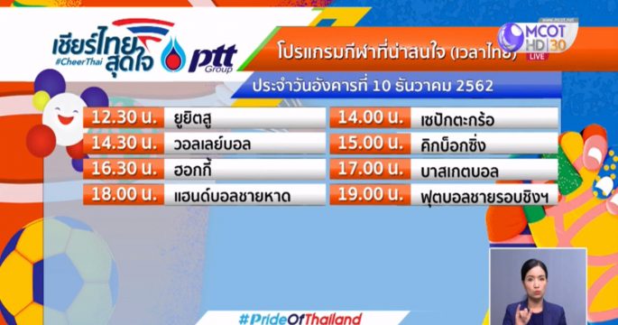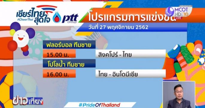 โปรแกรมการแข่งขันกีฬาซีเกมส์ของนักกีฬาไทยในช่วงบ่ายวันนี้