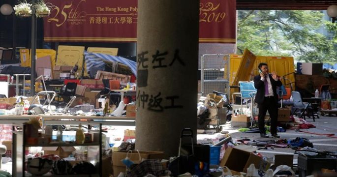 สถานการณ์ที่ ม.โปลีเทคนิคใกล้ยุติแล้วขณะฮ่องกงเตรียมเลือกตั้งท้องถิ่นพรุ่งนี้