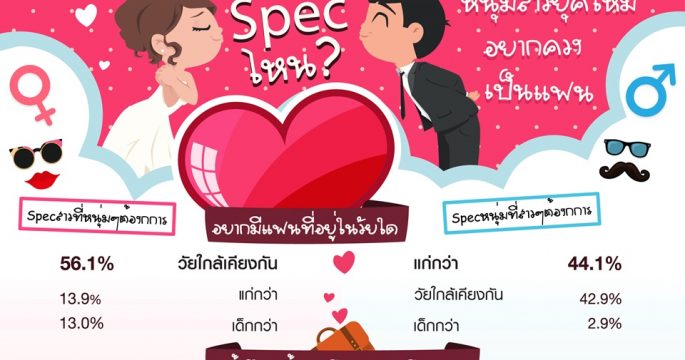 ผลโพลพบสาวๆยุคใหม่อยากมีแฟนอายุมากกว่า ขณะที่หนุ่มๆอยากมีแฟนวัยเดียวกัน แต่คิดเหมือนกันอยากมีแฟนเป็นนักธุรกิจ /เจ้าของกิจการ และอยากแต่งงานกับคนซื่อสัตย์