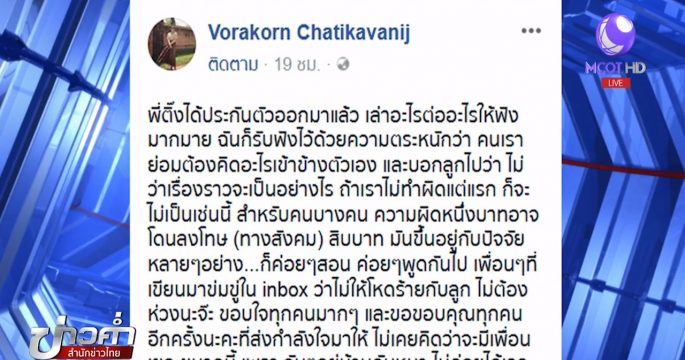 ภรรยา “กรณ์ จาติกวณิช” อดีต รมว.คลัง โพสต์เฟซบุ๊กแสดงความเห็นกรณีลูกชายถูกจับกุมข้อหามีโคเคนไว้ในครอบครอง แม้จะได้รับการประกันตัวไปแล้ว