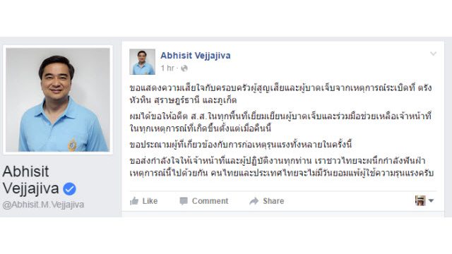 พร้อมแสดงความเสียใจกับผู้สูญเสีย และให้อดีต ส.ส.ในทุกพื้นที่ไปเยี่ยมผู้บาดเจ็บ