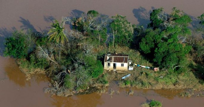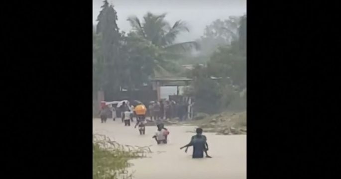 ภาพถ่ายจากสังคมออนไลน์เป็นภาพประชาชนในเมืองเพมบาทางเหนือของโมซัมบิก พยายามเดินฝ่าน้ำท่วมลึกเมื่อวันอาทิตย์ ในบางพื้นที่สูงถึงระดับเอว