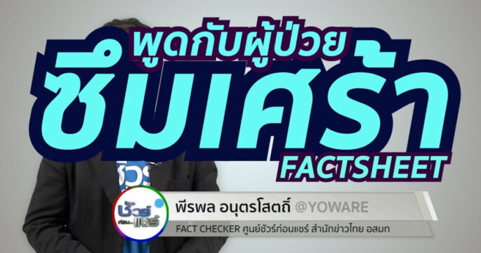 ชัวร์ก่อนแชร์ FACTSHEET : โรคซึมเศร้า – การพูดกับผู้ป่วยโรคซึมเศร้า