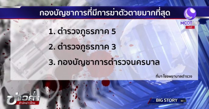 ไปดูสถิติการเสียชีวิตของตำรวจ ข้อมูลจากโรงพยาบาลตำรวจพบว่า อาชีพตำรวจที่มีความกดดันในการทำงานสูง มีสถิติการฆ่าตัวตายสูงกว่าคนทั่วไปถึง 3 เท่า