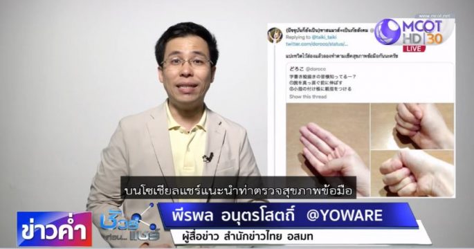บนสังคมออนไลน์แชร์แนะนำท่าตรวจสุขภาพข้อมือ เรื่องนี้จริงหรือไม่ ? ติดตามจากศูนย์ชัวร์ก่อนแชร์