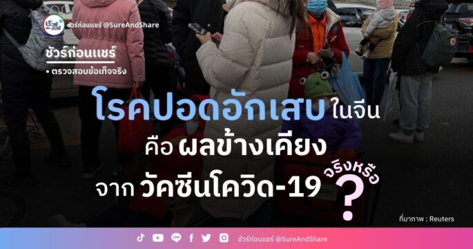 การระบาดของโรคปอดอักเสบในจีน มีสาเหตุจากเชื้อโรคที่พบในธรรมชาติ หนึ่งในนั้นคือแบคทีเรียไมโครพลาสมาชนิด Mycoplasma Pneumoniae ไม่ได้มีสาเหตุจากวัคซีนโควิด-19 แต่อย่างใด
