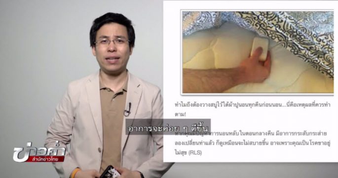 บนสังคมออนไลน์แชร์แนะนำว่า หากนำสบู่มาวางใต้ที่นอนจะแก้โรคขาอยู่ไม่สุข RLS ได้ เรื่องนี้จริงหรือไม่ ติดตามกับศูนย์ชัวร์ก่อนแชร์