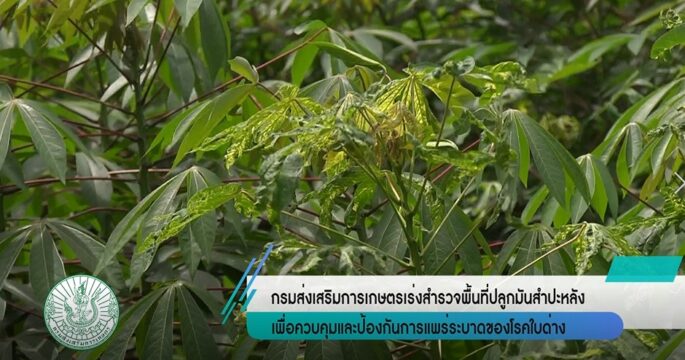 กรมส่งเสริมการเกษตรเร่งสำรวจพื้นที่ปลูกมันสำปะหลัง เพื่อควบคุมและป้องกันการแพร่ระบาดของโรคใบด่าง