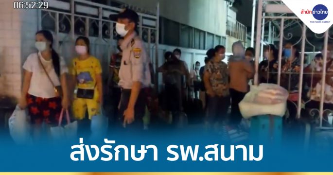 เจ้าหน้าที่สวมชุด PPE ขนแรงงานต่างด้าวติดเชื้อโควิด-19 กว่า 60 คน ออกจากโรงงานทอผ้า ส่งไปรักษาที่โรงพยาบาลสนาม ขณะที่ชาวบ้านคิดว่าแรงงานเก็บสัมภาระหนีปิดแคมป์
