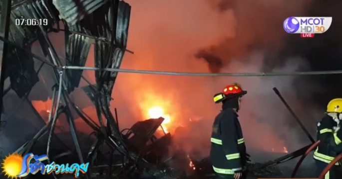 เพลิงไหม้โรงงานที่นอนสมุทรสาคร เสียหายกว่า 10 ล้านบาท