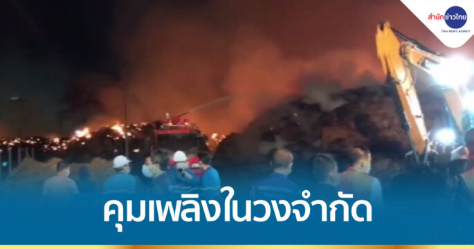 ไฟไหม้กองอัดใบอ้อยในโรงงานน้ำตาลสุพรรณฯ พื้นที่กว่า 40 ไร่ จมทะเลเพลิง ล่าสุดควบคุมเพลิงได้ในวงจำกัดแล้ว แต่ยังต้องฉีดน้ำควบคุมเพลิงบางส่วน