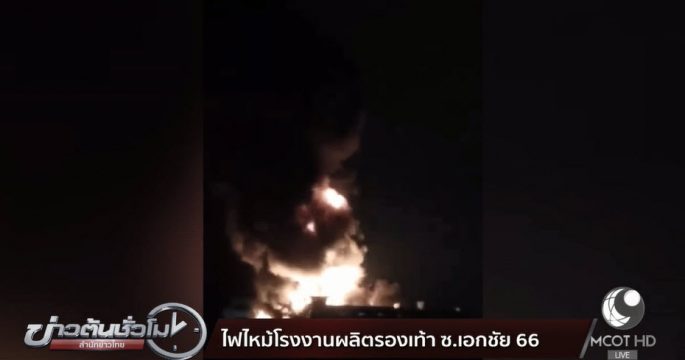 เพลิงปะทุซ้ำโรงงานผลิตรองเท้าย่านบางพลี