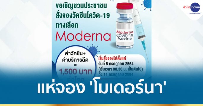 โรงพยาบาลรามาธิบดี แจ้งยอดจองวัคซีน ‘โมเดอร์นา’ ครบเต็มจำนวนแล้ว กำหนดราคาเบื้องต้นไว้ที่ 1,500 บาทต่อโดส