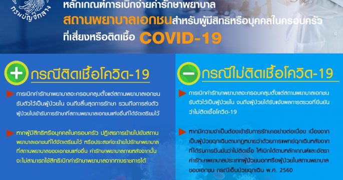 กรมบัญชีกลางให้ผู้มีสิทธิ์หรือบุคคลในครอบครัวที่เสี่ยงหรือติดเชื้อโควิด-19 เบิกค่ารักษาโรงพยาบาลเอกชนได้