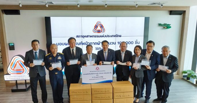 ส.อ.ท.มอบหน้ากากผ้า 100,000 ชิ้น ให้ 10 โรงพยาบาลรัฐ พร้อมมอบแอลกอฮอล์ฆ่าเชื้อให้โรงพยาบาลที่จำเป็น