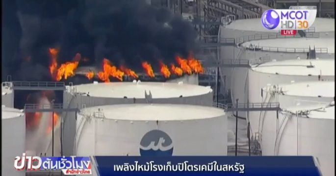 เกิดเหตุเพลิงไหม้โรงเก็บปิโตรเคมีของบริษัทอินเตอร์คอนติเนนตัล เทอร์มินัลส์ ในเมืองเดียร์ พาร์ค รัฐเท็กซัส ของสหรัฐ