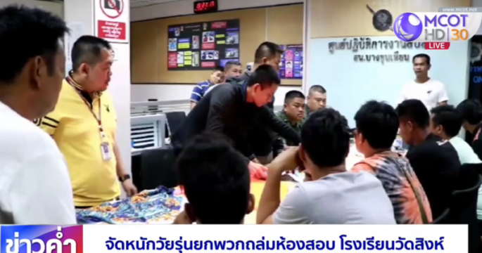 ตำรวจแยกสอบปากคำแก๊งโจ๋ บุกทำร้ายร่างกาย ครู นักเรียน ลวนลามหญิง ในโรงเรียนมัธยมวัดสิงห์ ก่อนส่งตัวฝากขังพรุ่งนี้