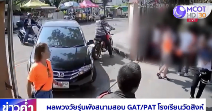 เหตุกลุ่มชายฉกรรจ์บุกทำร้าย ผอ. ครู และนักเรียนที่กำลังสอบ GAT/PAT ที่โรงเรียนมัธยมวัดสิงห์ หลังไม่พอใจ ผอ.ที่ไปเตือนให้ขบวนแห่นาคลดใช้เสียง ล่าสุด สทศ.เยียวยาเด็ก เตรียมให้สอบใหม่วันที่ 5 มี.ค.นี้