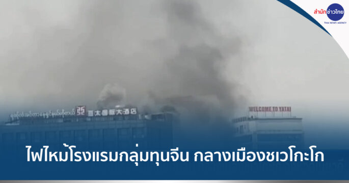 เพลิงไหม้โรงแรมกลุ่มบริษัททุนจีน กลางเมืองชเวโกะโก จังหวัดเมียวดี ติดแนวชายแดนไทย-เมียนมา เบื้องต้นยังไม่มีรายงานผู้ได้รับบาดเจ็บ