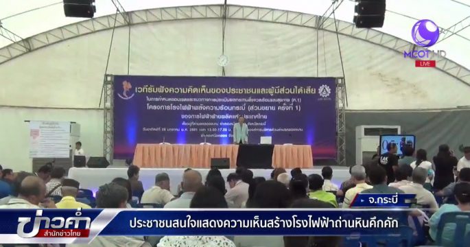 ประชาชนให้ความสนใจเข้าร่วมเวทีรับฟังความคิดเห็นโครงการโรงไฟฟ้าถ่านหินกระบี่ ซึ่งบรรยากาศเป็นไปด้วยความเรียบร้อย ขณะที่กลุ่มต่อต้านปฏิเสธร่วมเวทีดังกล่าว