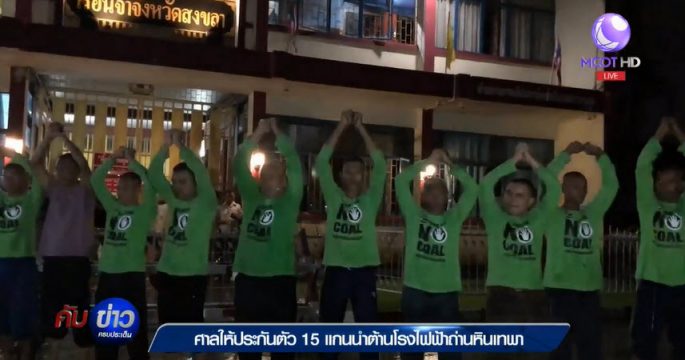ศาลจังหวัดสงขลา อนุญาตให้ประกันตัว 15 แกนนำม็อบถ่านหินแล้ว ขณะนี้ทั้งหมดได้รับการปล่อยตัวออกจากเรือนจำแล้ว