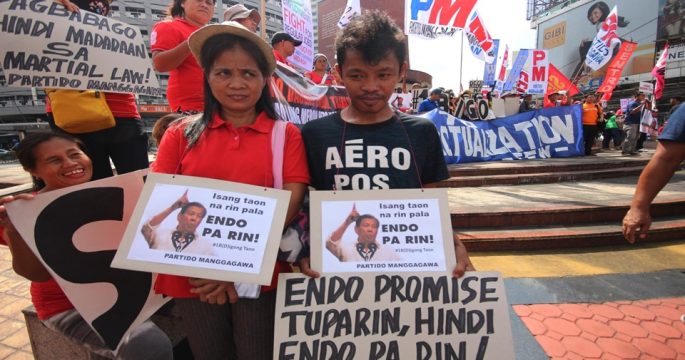 แรงงานและนักเคลื่อนไหวในฟิลิปปินส์เดินขบวนเนื่องในวันแรงงานสากลวันนี้ เรียกร้องให้ประธานาธิบดีโรดริโก ดูเตอร์เต ทำตามที่หาเสียงเลือกตั้งไว้เมื่อสองปีก่อนว่าจะยกเลิกสัญญาจ้างงานระยะสั้น