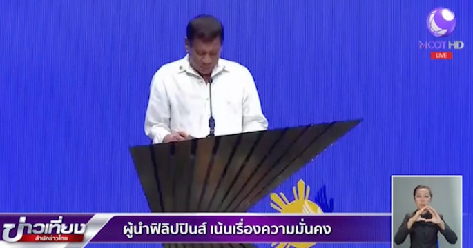 ประธานาธิบดีโรดริโก้ ดูเตอร์เต้ของฟิลิปปินส์ เป็นประธานในการประชุมสุดยอดผู้นำอาเซียน ครั้งที่ 31 เมื่อช่วงเช้าที่ผ่านมาและได้กล่าวเน้นเรื่องการก่อการร้ายและเหตุรุนแรงอื่นๆ ที่เป็นภัยต่อสันติภาพและเสถียรภาพในภูมิภาคนี้