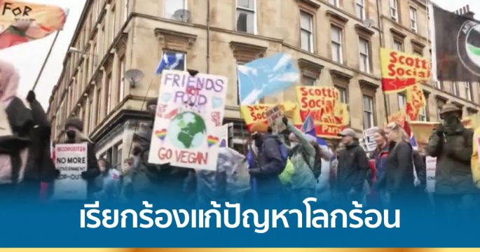 สกอตแลนด์ 7 พ.ย. – ประชาชนชาวสกอตแลนด์หลายพันคนประท้วงจัดการประชุมโลกร้อน เรียกร้องให้รัฐบาลทั่วโลกเร่งดำเนินการแก้ปัญหาโลกร้อนโดยด่วน