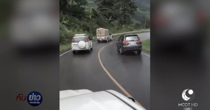 คลิปเตือนภัย อันตรายขับรถเร็วลงภูทับเบิก แซงทางโค้งหักศอก และเกิดเสียหลักหมุนกลางถนน โชคดีรถยนต์ที่วิ่งตามมาเบรกทัน ไม่เกิดอุบัติเหตุตกเหว