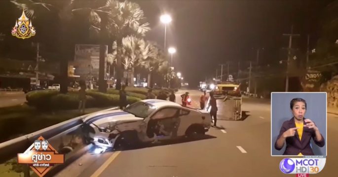 หนุ่มนักแข่งรถ ซิ่งมัสแตงยางระเบิดกลางเมืองพัทยา รถหมุนคว้างหลายตลบ