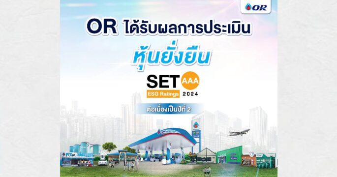 โออาร์ ได้รับการประเมินผลหุ้นยั่งยืน SET ESG Ratings ประจำปี 2567 ที่ระดับสูงสุด “AAA” ในกลุ่มอุตสาหกรรมทรัพยากร ต่อเนื่องเป็นปีที่ 2 ตอกย้ำความมุ่งมั่นในการดำเนินงานธุรกิจตามวิสัยทัศน์ “Empowering All toward Inclusive Growth: OR เติมเต็มโอกาส เพื่อทุกการเติบโต ร่วมกัน”