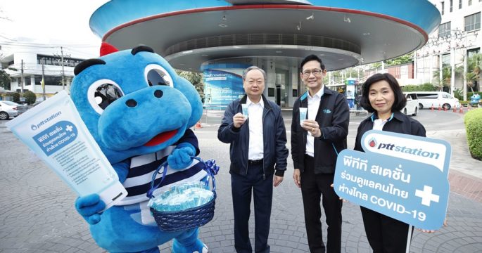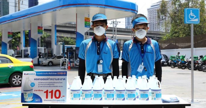 พีทีที สเตชั่น ร่วมดูแลคนไทยห่างไกลโควิด-19 แจกเจลแอลกอฮอล์ให้ผู้เติมน้ำมันที่พีทีที สเตชั่น กว่า 1 ล้านชิ้น
