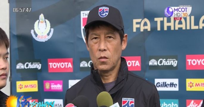 อากิระ นิชิโนะ นำทีมช้างศึกลงฝึกซ้อม โดยไม่มีสุภโชค สารชาติ พรรษา เหมวิบูลย์ และนฤบดินทร์ วีรวัฒโนดม ที่บาดเจ็บ