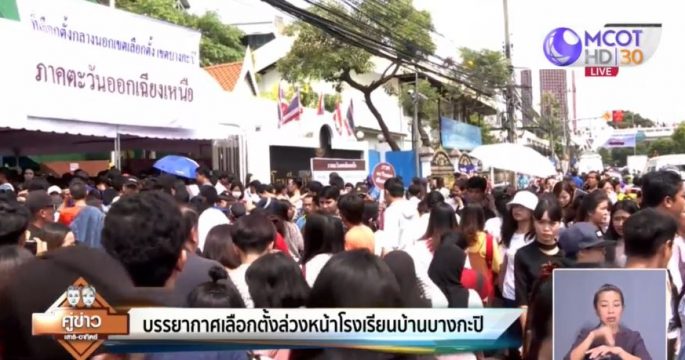 หน่วยเลือกตั้งโรงเรียนบ้านบางกะปิ มีประชาชนทยอยเดินทางมาใช้สิทธิเลือกตั้งล่วงหน้านอกเขตอย่างต่อเนื่อง ซึ่งเป็นหน่วยเลือกตั้งที่มีผู้ลงทะเบียนใช้สิทธิมากที่สุดกว่า 60,000 คน