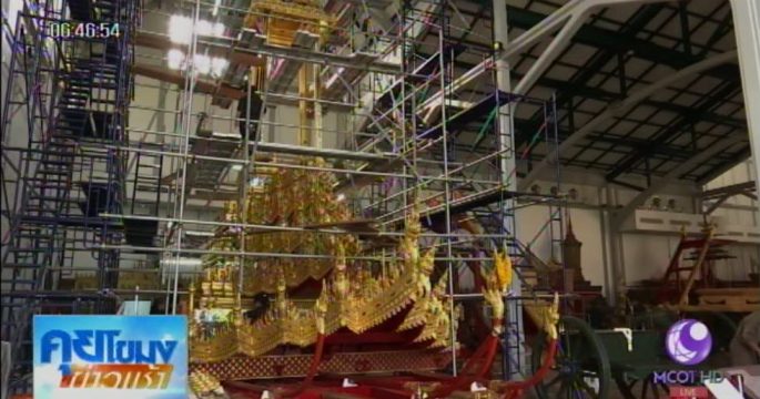 สำนักช่างสิบหมู่ทดสอบการรองรับน้ำหนักของรางเลื่อนเกรินบันไดนาคสำหรับอัญเชิญพระโกศพระบรมศพในหลวงรัชกาลที่ 9 จากพระมหาพิชัยราชรถสู่ราชรถปืนใหญ่