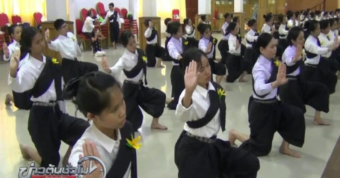 นักเรียน ศิษย์เก่า และข้าราชการครูโรงเรียนมุกดาหาร ร่วมฝึกซ้อมรำเทิดพระเกียรติในหลวงรัชกาลที่ 9 เตรียมแสดงหน้าพระเมรุมาศจำลอง หน้าศาลากลางจังหวัด 26 ต.ค.นี้