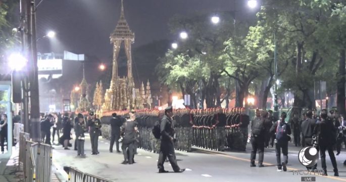 ประชาชนเนืองแน่นตั้งแต่เช้ามืด รอชมการซักซ้อมริ้วขบวนพระบรมราชอิสริยยศ งานพระราชพิธีถวายพระเพลิงพระบรมศพ พระบาทสมเด็จพระปรมินทรมหาภูมิพลอดุลยเดช ครั้งที่ 2 ในวันนี้