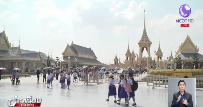 ประชาชนเดินทางเข้าชมนิทรรศการพระเมรุมาศต่อเนื่อง แม้อากาศจะร้อนแต่หลายคนก็มีความตั้งใจจะเข้าความงดงามของพระเมรุมาศ